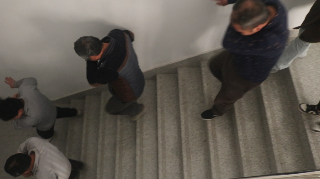 “大家不要慌!捂住口鼻,彎腰低姿,扶墻走!”安全員迅速就位,在樓梯口、拐角處引導疏散。員工們捂住口鼻,壓低身體,沿著墻壁摸索前行。樓道內,大家保持安靜,沒有推搡、沒有擁擠,只有急促而有序的腳步聲。